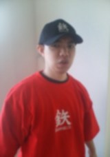 見てください、すごいでしょー!「鉄」Tシャツ&キャップ!!(モデルは中島啓貴(29)さん)